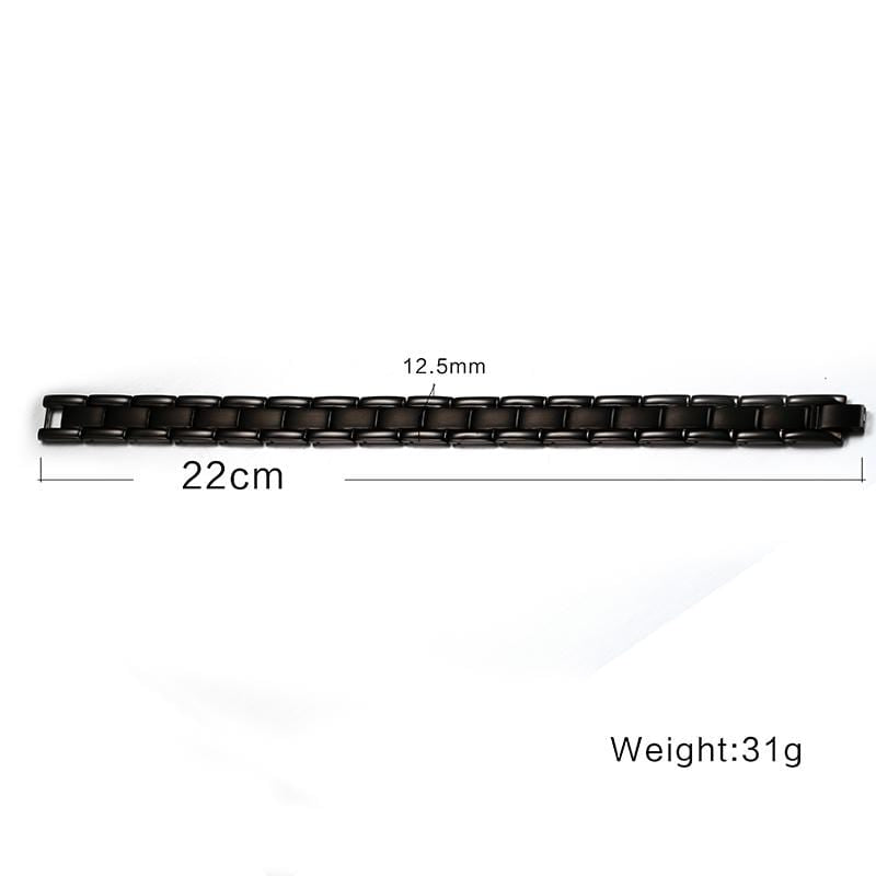 Our uniquely patterned magnetic linked bracelet for Mens has a striking cross pattern , creating a different design from most on the market, complete with magnetised, far infrared, germanium and negatively ionised plates. This stylishly designed magnetic therapy bracelet has magnetic inserts on the inner to bring health benefits to the wearer,reported benefits of magnetic bracelets includes Improved blood circulation, and also helpful in certain conditions, such as arthritis and insomnia. However you should not go for magnetic therapy if you are on a pacemaker, or have an insulin pump attached to your body . We also send one tool for adjusting length of this bracelet. This layered stainless steel Adjustable Link Bracelet makes a powerful statement while also having the benefits of negative ions, magnetic, germanium and far infrared inner plates.