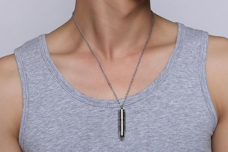 Stainless Steel Mens Bullet Bible Verse Necklace