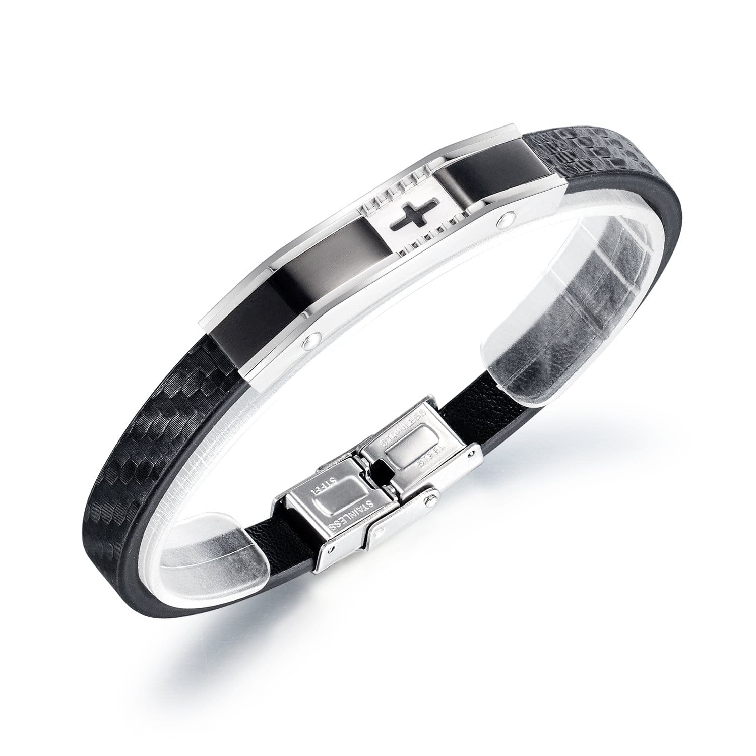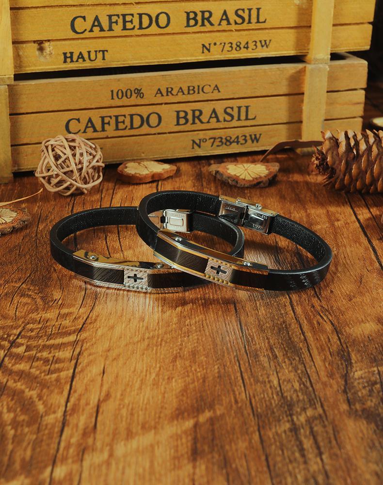Stainless Steel Mens Cross Leather Bracelet