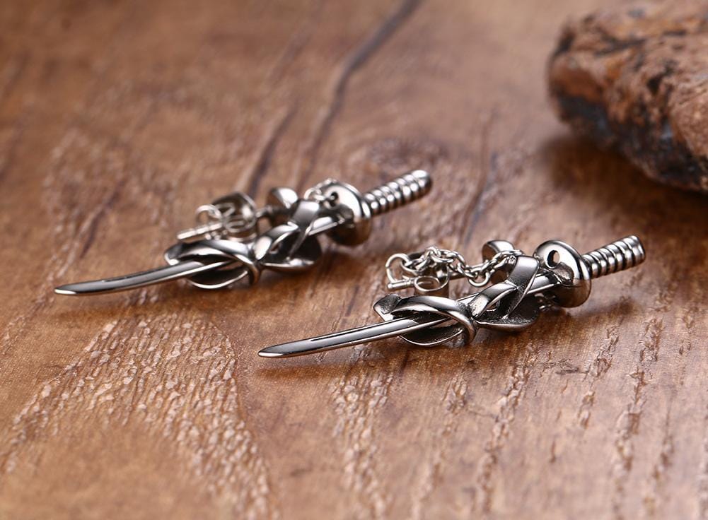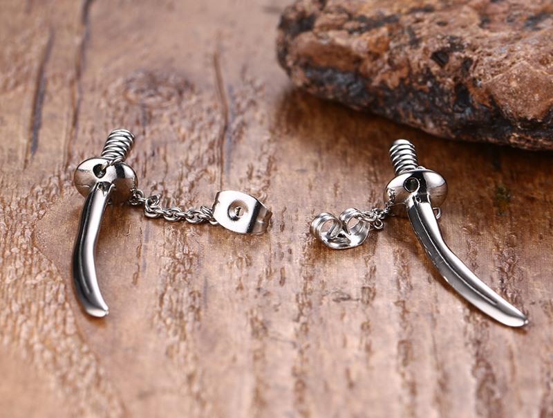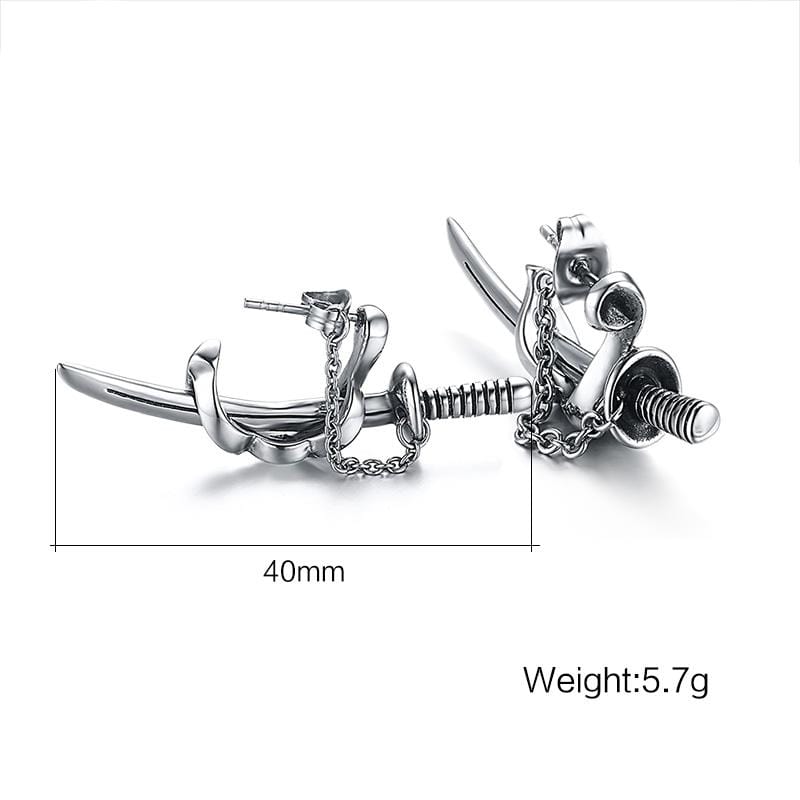 Stainless Steel Mens Sword Stud Earrings