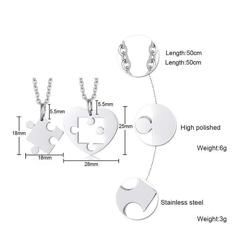 Features:Stainless Steel Puzzle Necklaces For Couples Comes with an elegantly designed and sturdy gift box that is ideal for storing and presenting jewellery.