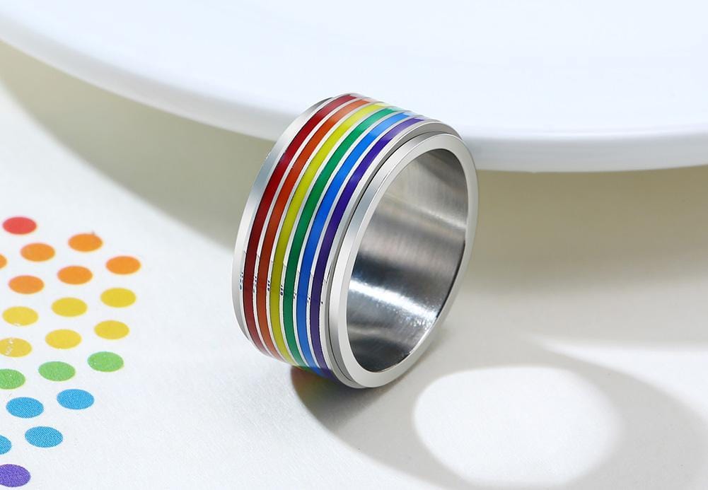 Stainless Steel Rainbow Spinner Ring