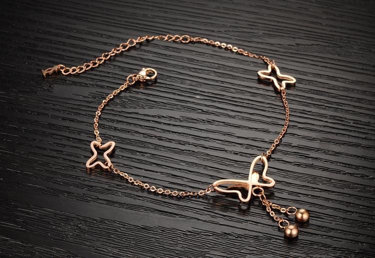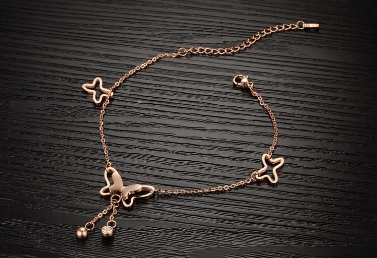 Buterfly 1: 21mm x 13mm Buterfly 2: 12mmFeatures:Stainless Steel Rose Gold Anklet Comes with an elegantly designed and sturdy gift box that is ideal for storing and presenting jewellery.