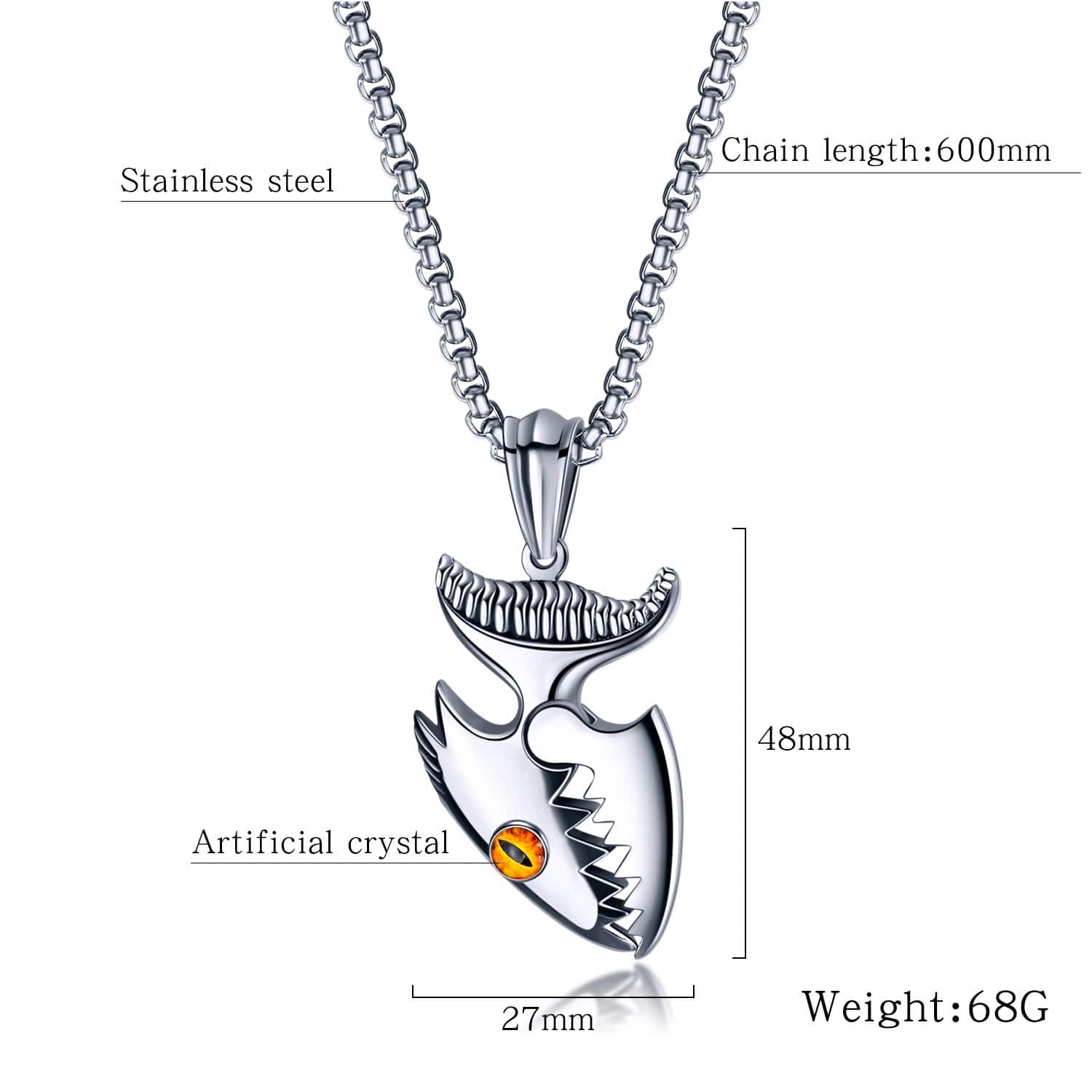 Features:Stainless Steel Silver Shark Necklace Comes with an elegantly designed and sturdy gift box that is ideal for storing and presenting jewellery.