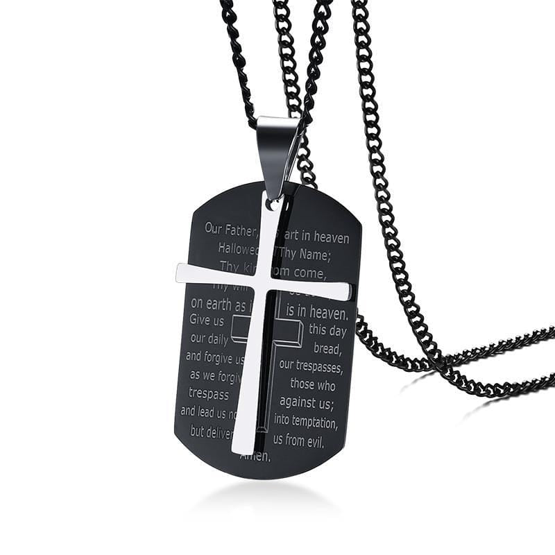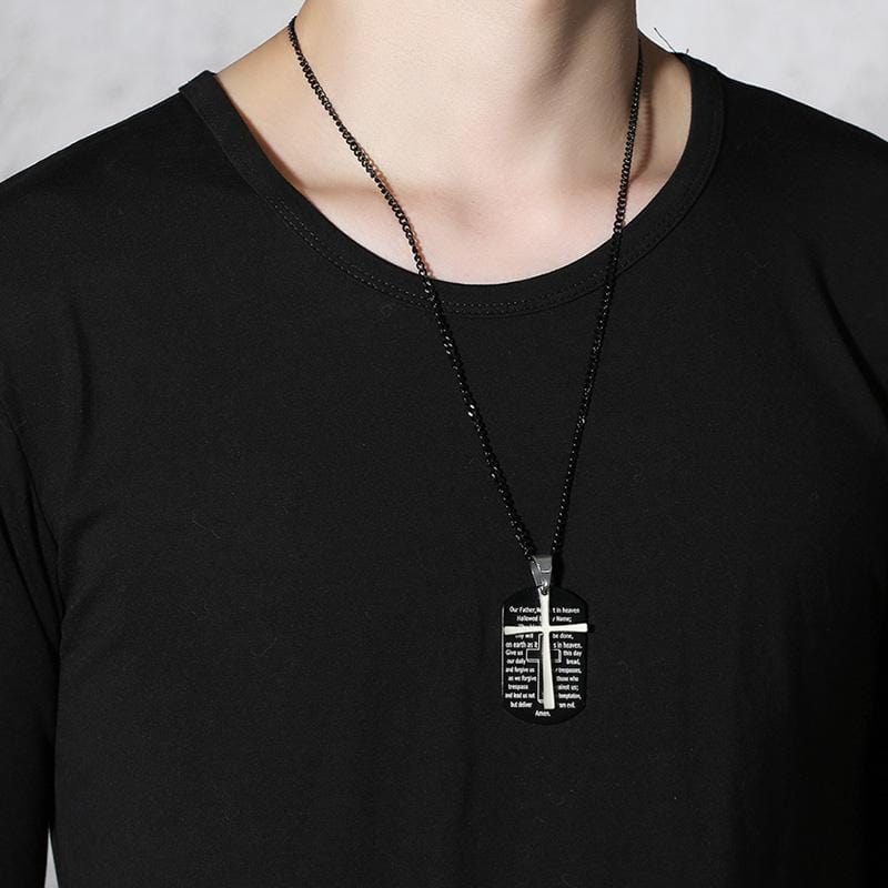 High-Quality Stainless Steel Steel Cross Bible Verse Tag Necklace