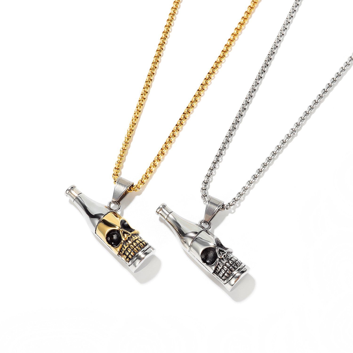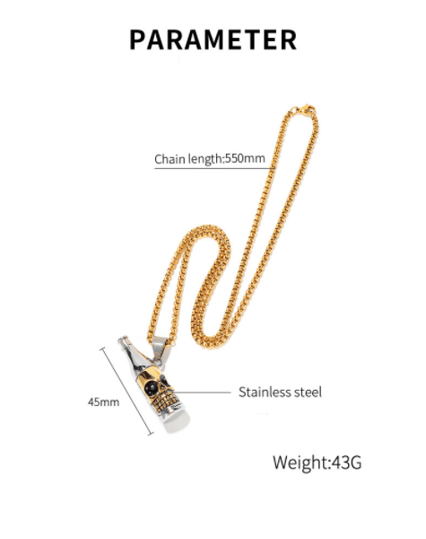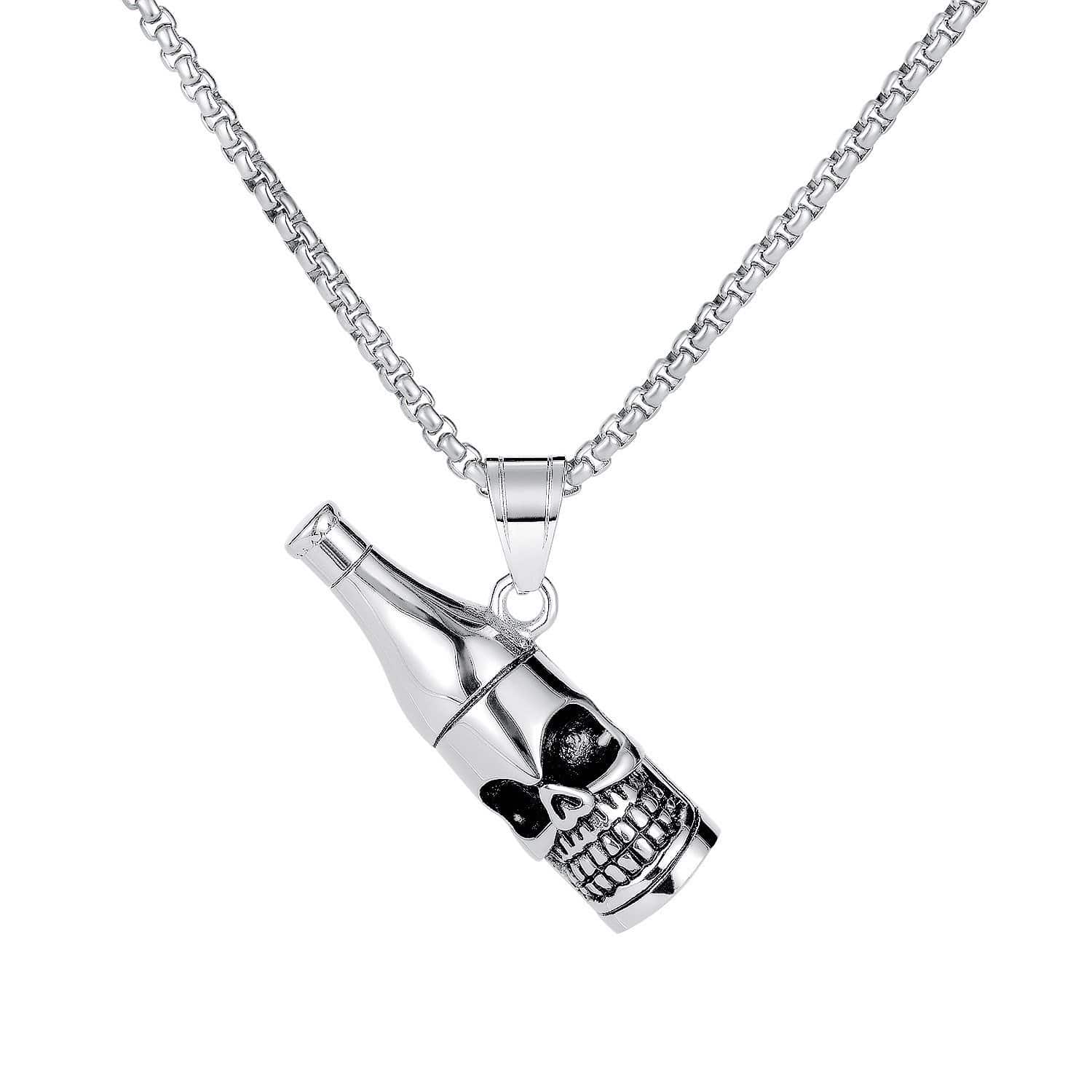 Features:Stainless Steel Wine Bottle Skull Necklace Comes with an elegantly designed and sturdy gift box that is ideal for storing and presenting jewellery.