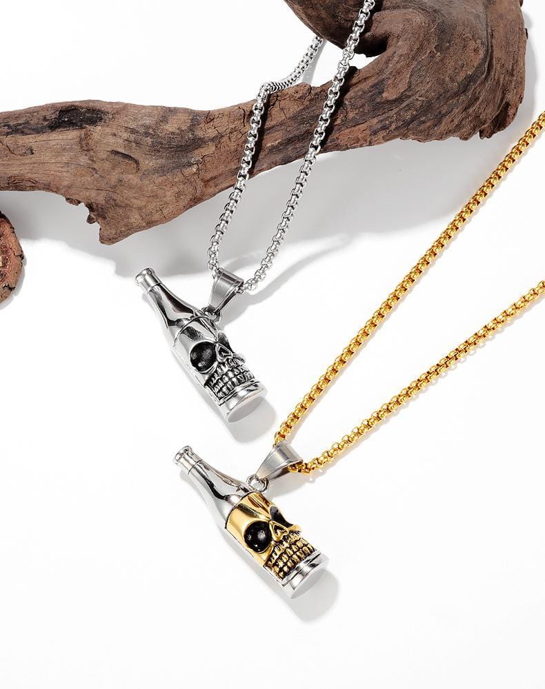 Stainless Steel Wine Bottle Skull Necklace