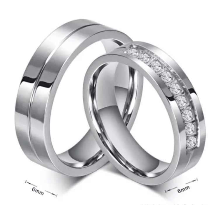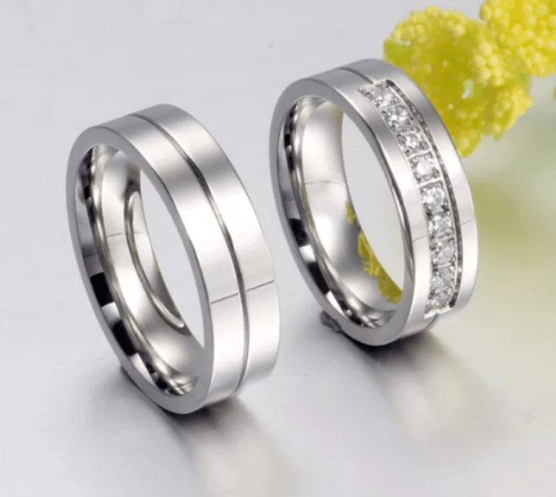Steel 9 Stones Wedding Engagement Ring for Couple