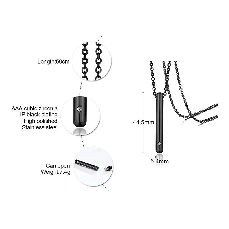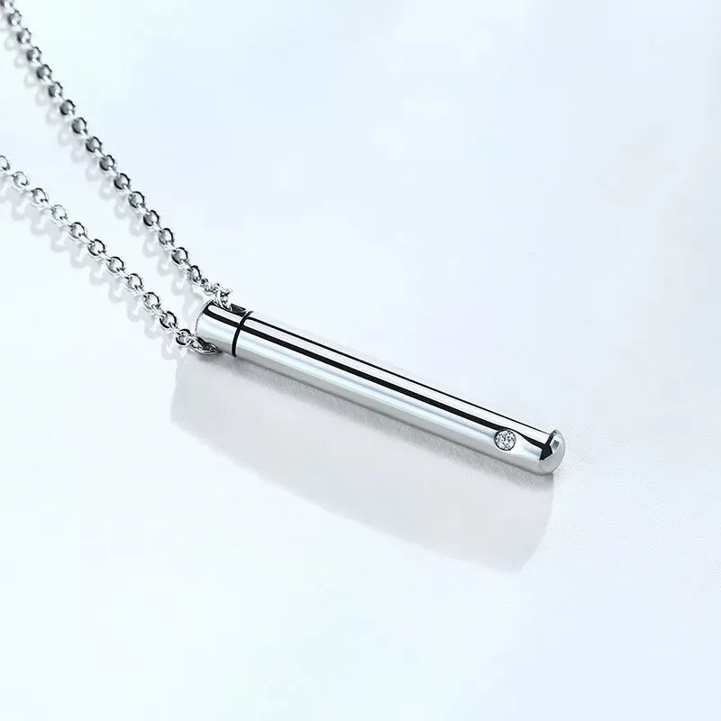 Introducing our Cylinder Cremation Necklace, a thoughtful and dignified way to keep your loved ones close to your heart. Designed for both men and women, this exquisite piece serves as a meaningful memorial. Crafted with precision, the cylinder pendant discreetly holds a small portion of ashes, a lock of hair, or any cherished memento, allowing you to carry their memory wherever you go. The necklace combines elegance and sentimentality, featuring a sturdy yet refined chain that complements its minimalist design. Honour and remember your loved ones with grace through our Cylinder Cremation Necklace.