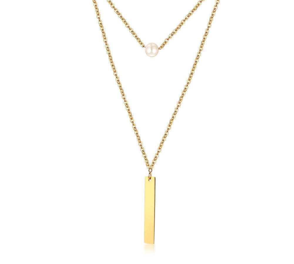 Steel Gold Bar And Pearl Layered Necklace Comes with an elegantly designed and sturdy gift box that is ideal for storing and presenting jewellery.