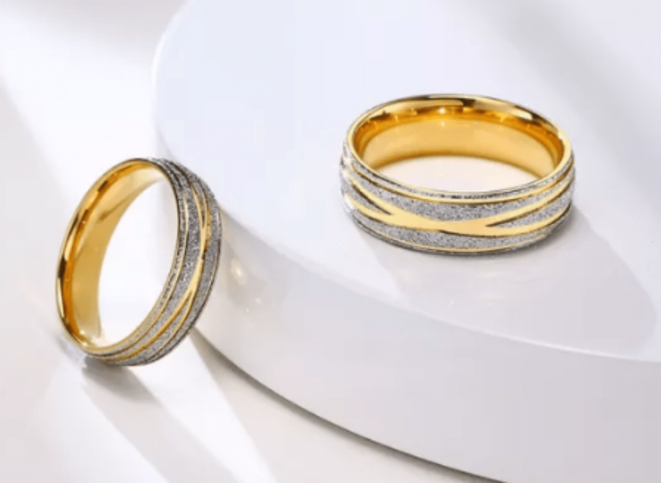 Steel Gold Sand Blast Finish Wedding Engagement Ring for Couple
