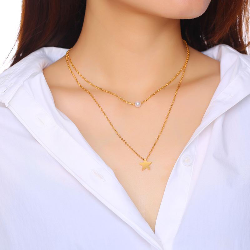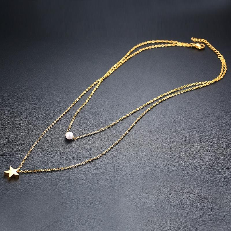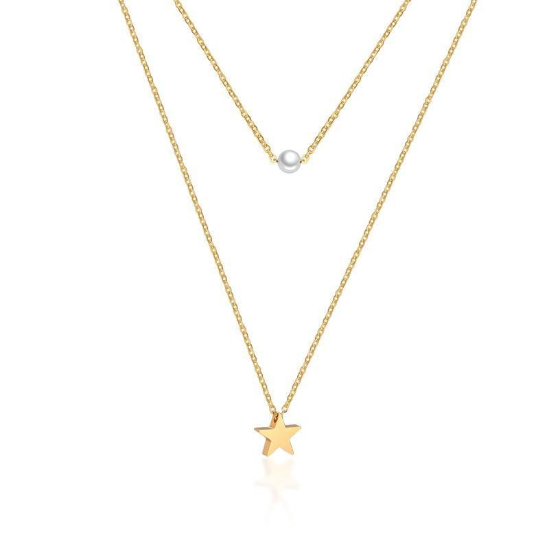 Features: Steel Gold Star Pearl Layered Necklace Comes with an elegantly designed and sturdy gift box that is ideal for storing and presenting jewellery.