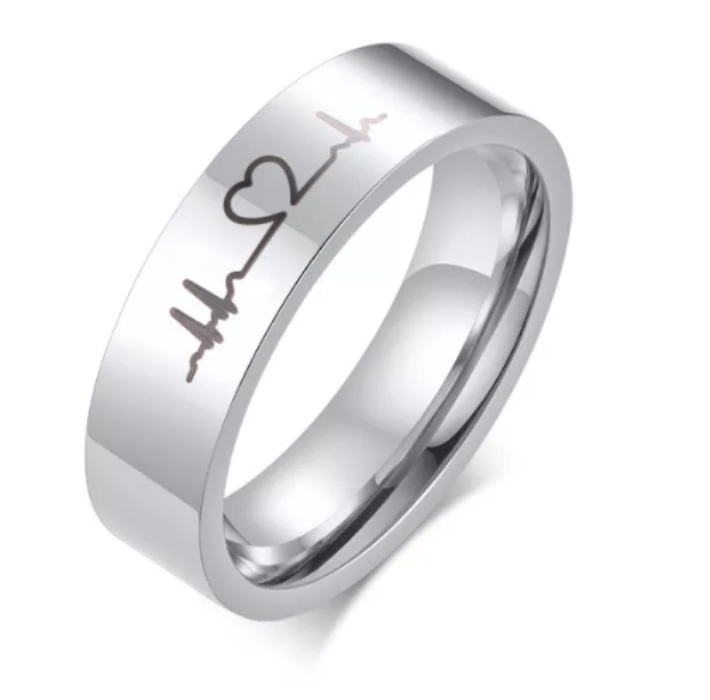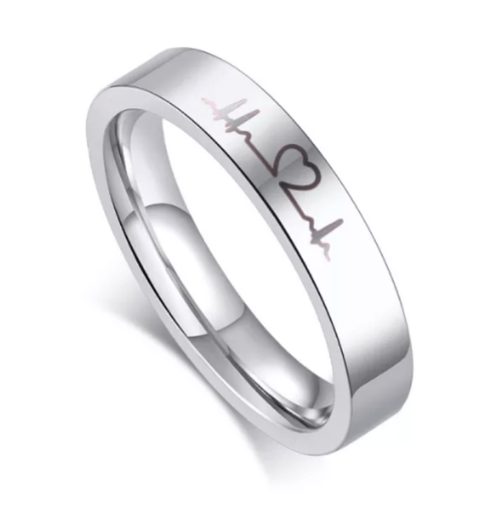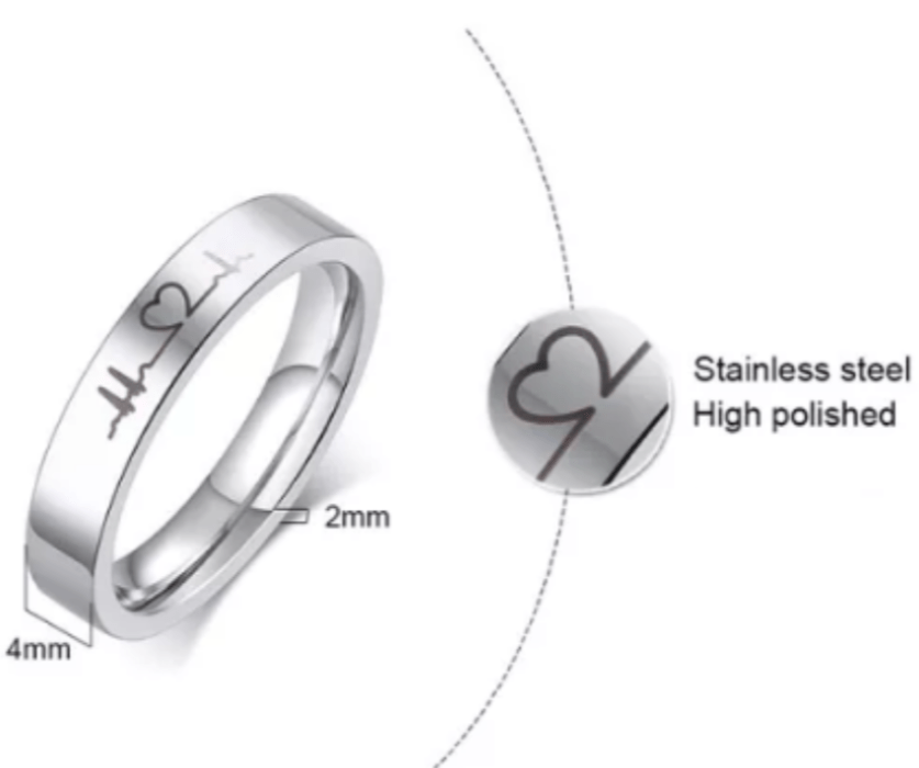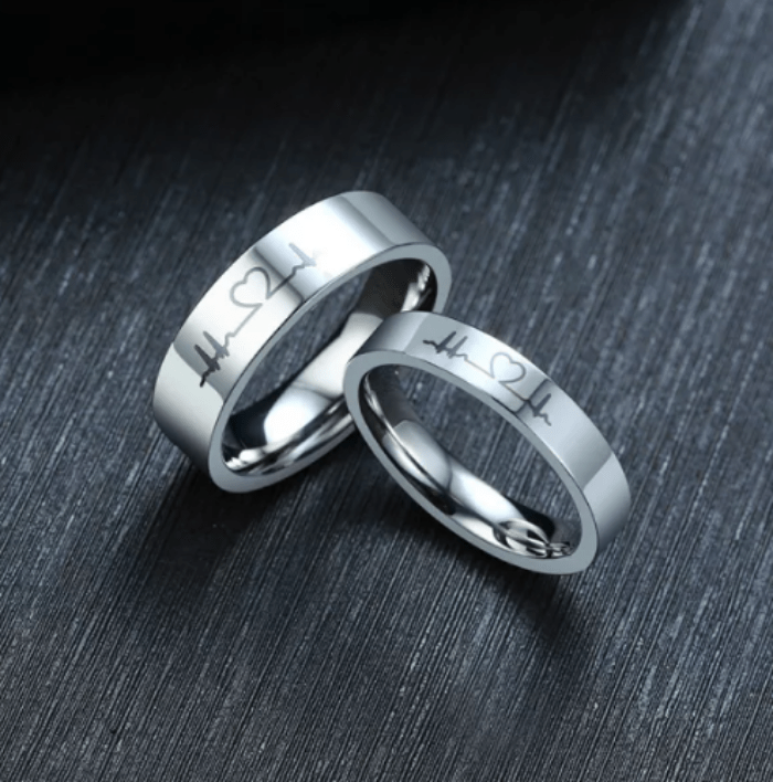 Steel Heartbeat Wedding Engagement Ring for Couple