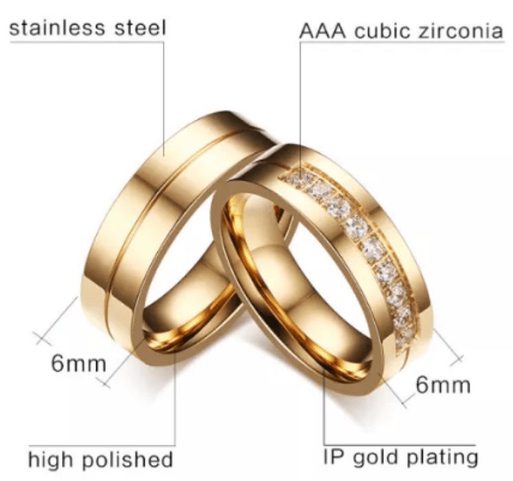 Steel Gold 9 CZs Wedding Engagement Ring for Couple