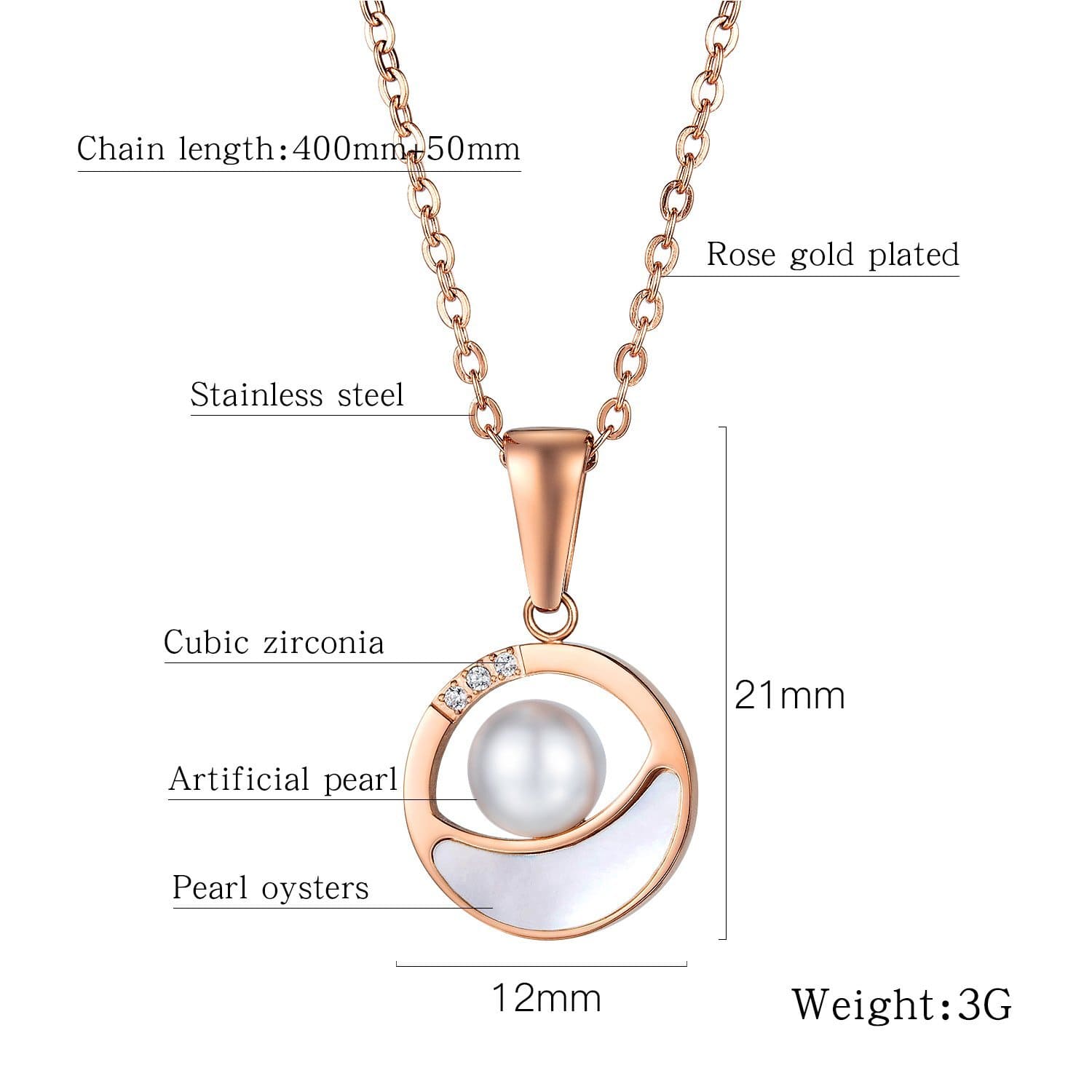 Features:Steel Rose Gold Oyster Pearl Necklace Comes with an elegantly designed and sturdy gift box that is ideal for storing and presenting jewellery.
