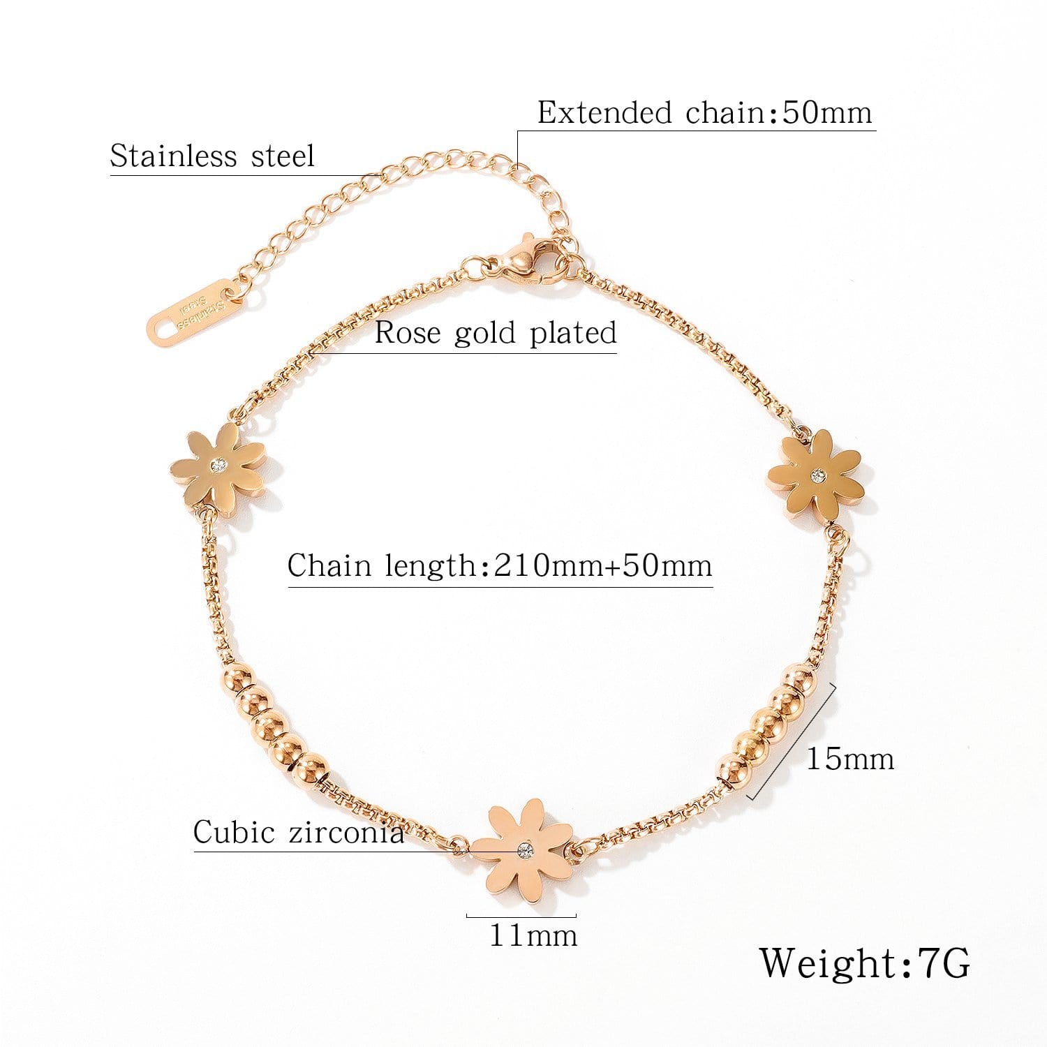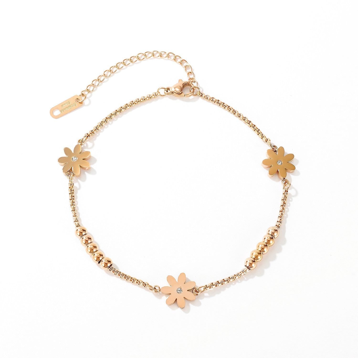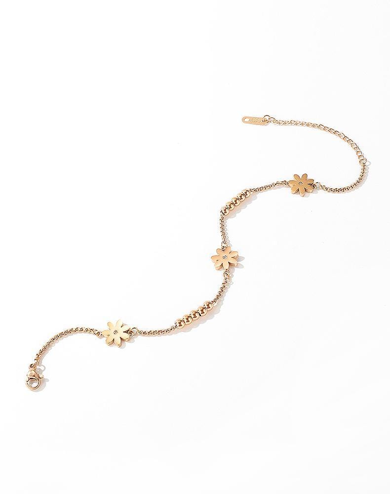Steel Rose Gold Woman Daisy Flowers Anklet