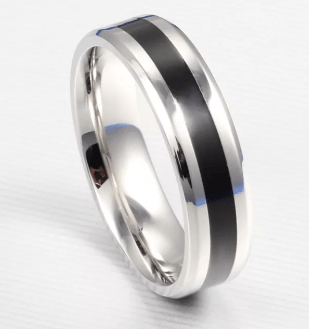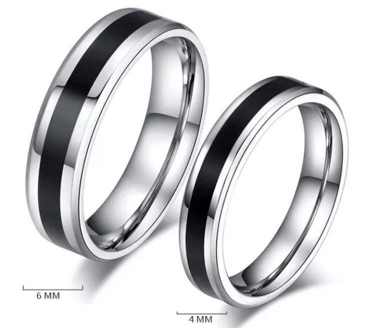 Steel Silver Black Wedding Engagement Ring for Couple