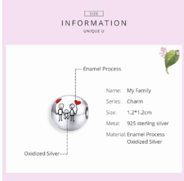 Features : Sterling Silver Family Charm comes with an elegantly designed and sturdy gift box that is ideal for storing and presenting jewellery.