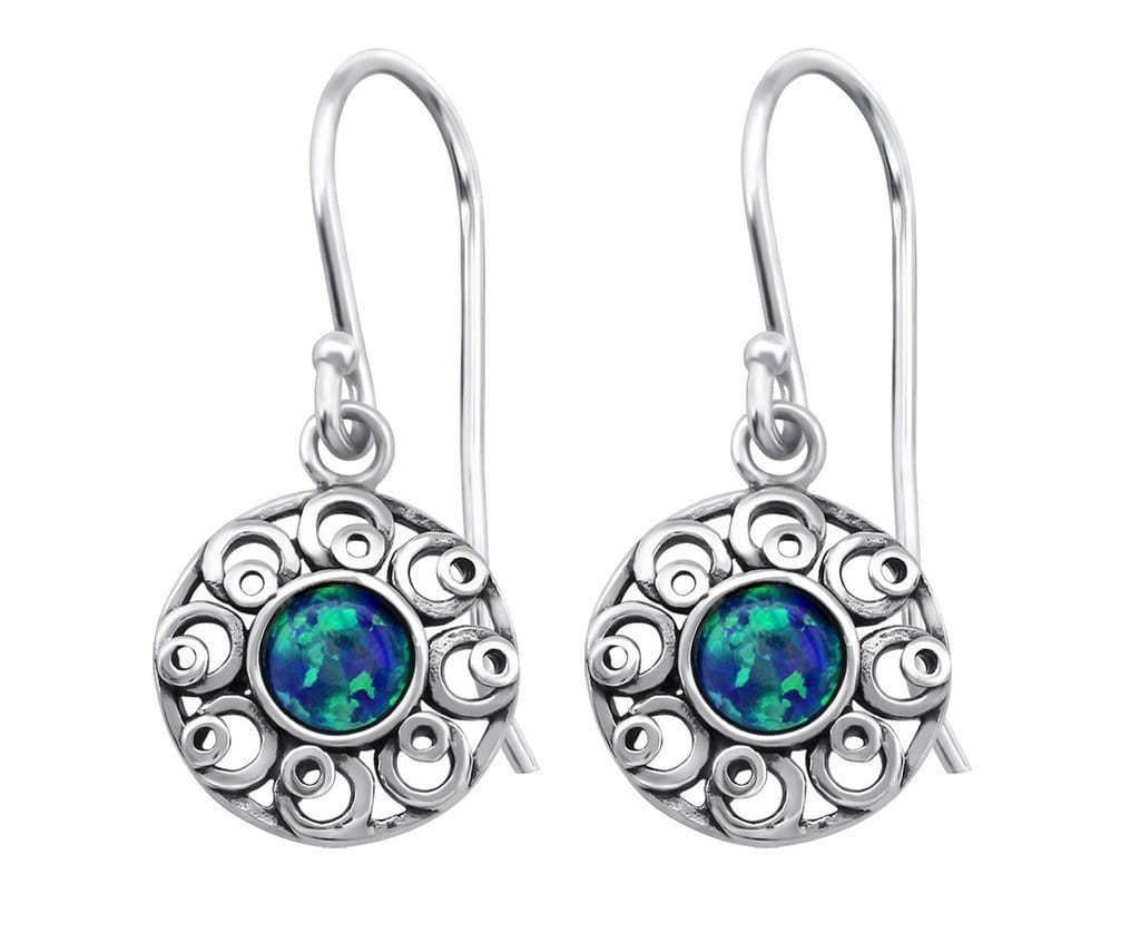 Sterling Silver Flower Earrings Fire Snow With Opal are sure to be the finishing touch to any outfit. Exquisitely crafted in sterling silver and will give your designs an elegant appearance.