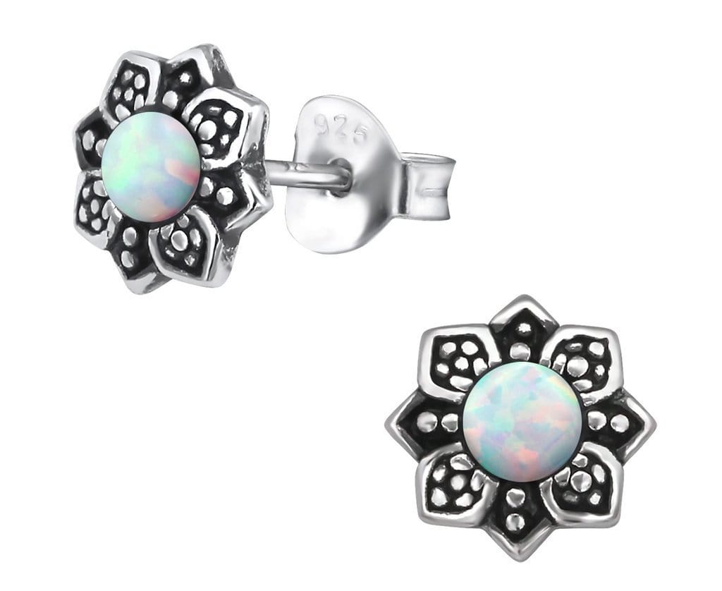 Sterling Silver Flower Opal Ear Studs