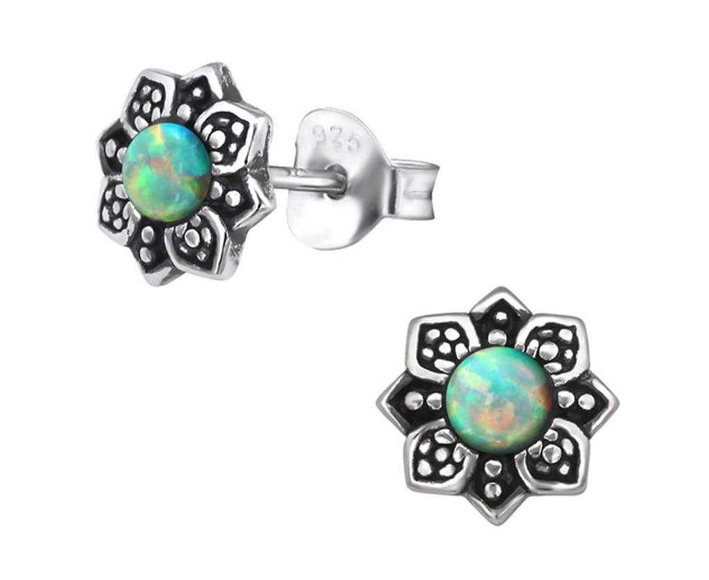 Sterling Silver Flower Opal Stud Earrings