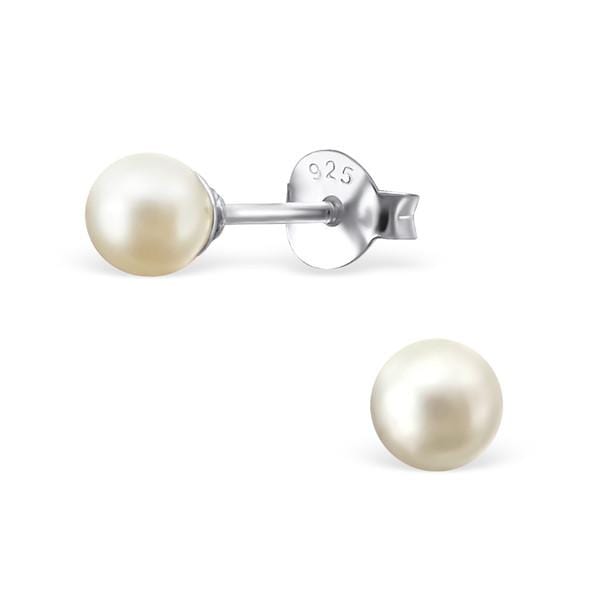 Sterling Silver Glass 4mm Pearl Stud Earrings