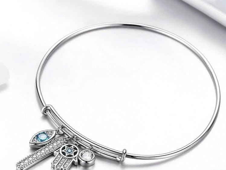 Sterling Silver Hamsa Bangle Bracelet