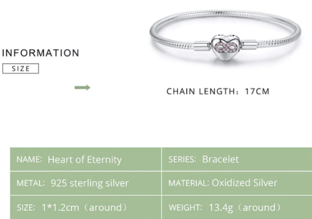 Features : Sterling Silver Heart Infinity Bracelet comes with an elegantly designed and sturdy gift box that is ideal for storing and presenting jewellery.