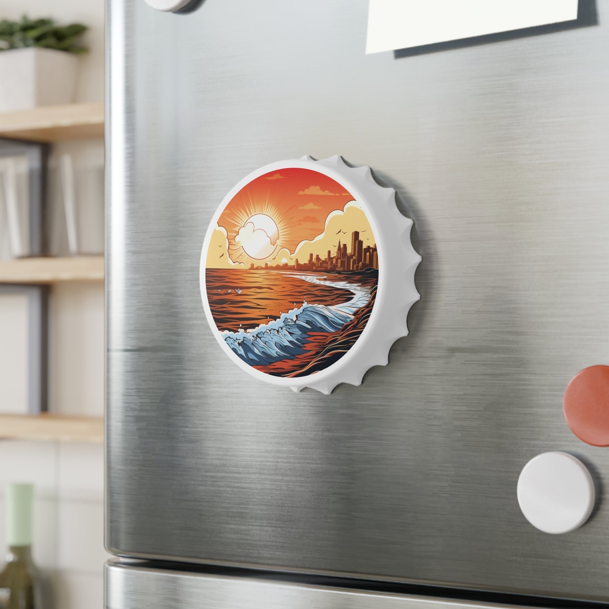 The magnet inside makes sure the cap stays put after you open the bottle, making it easier and faster to throw it away. This is especially helpful for people who find regular bottle openers hard to use. Create a versatile decor item that can be used both as a fridge magnet and a bottle opener.