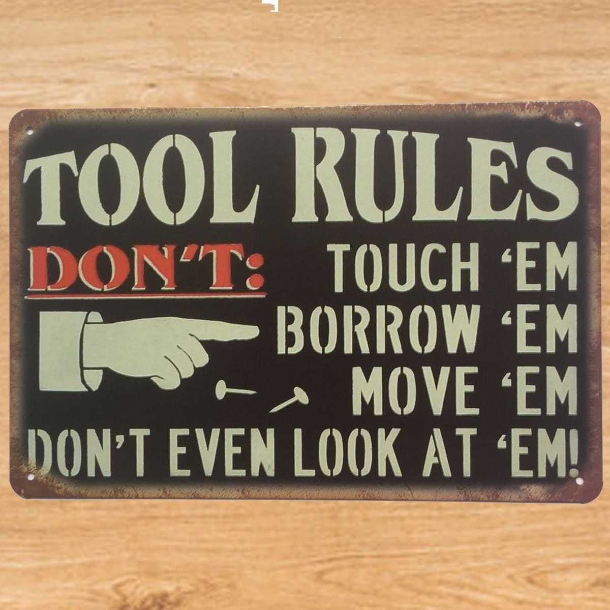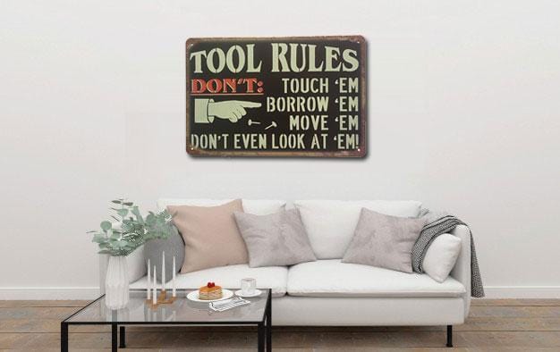 Tool Rules Sign Metal Poster- Wall metal tin poster will adorn the look and feel of your room's wall. The wall poster has dimensions of 20 x 30 cm and can be stuck in any corner of your room and it will look just as great.
