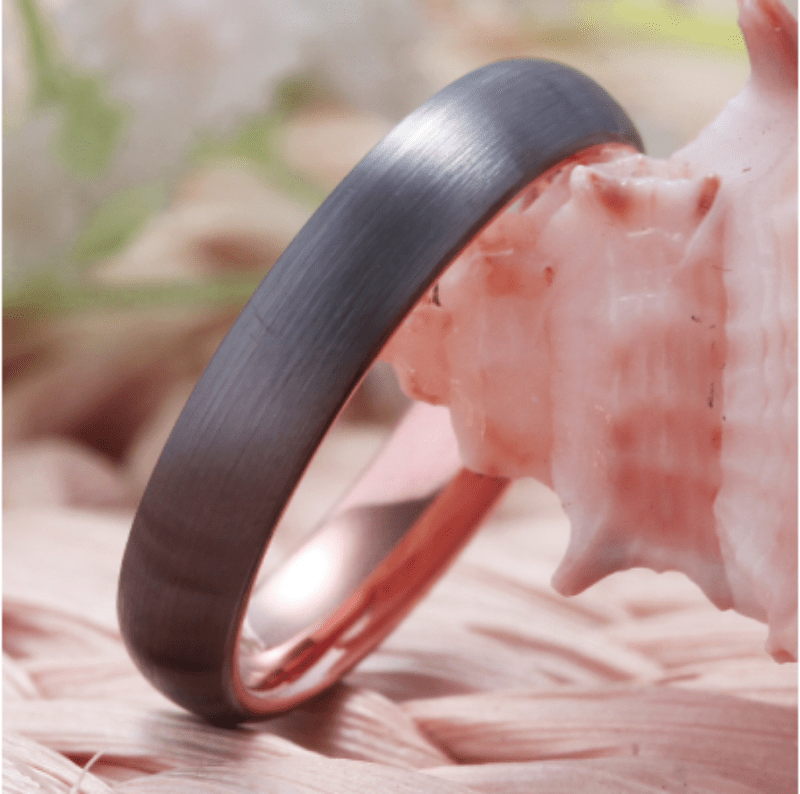 Modern and stylish, this exquisite two-tone wedding ring offers a soft depth of matte silver set off by beautiful rose gold details. Hand-crafted using the highest quality tungsten this precious band is tarnish resistant, scratch resistant and waterproof making it perfect for everyday wear. Also available 4 mm & 6mm width as a wedding ring for women.