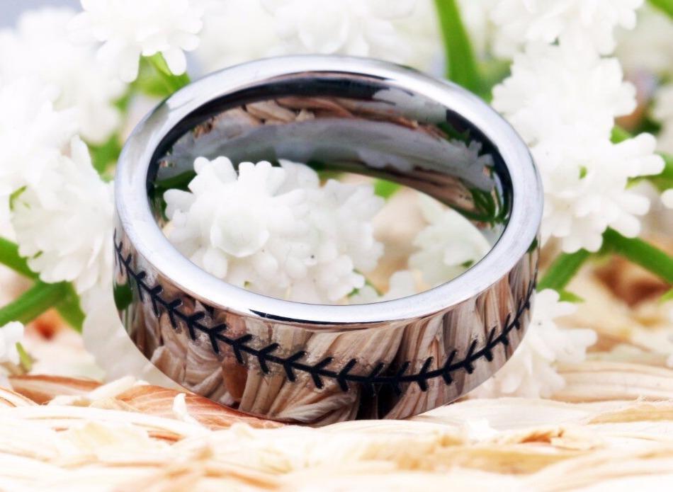 If you love the game of baseball, you will love this stunning tungsten baseball ring. The ring features a high-polish silver finish, black resin stitching and a sleek modern design and is perfect for pairing with both formal and casual ensembles.