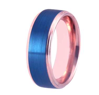 Tungsten Blue and Rose Gold Couple Wedding Engagement Ring
