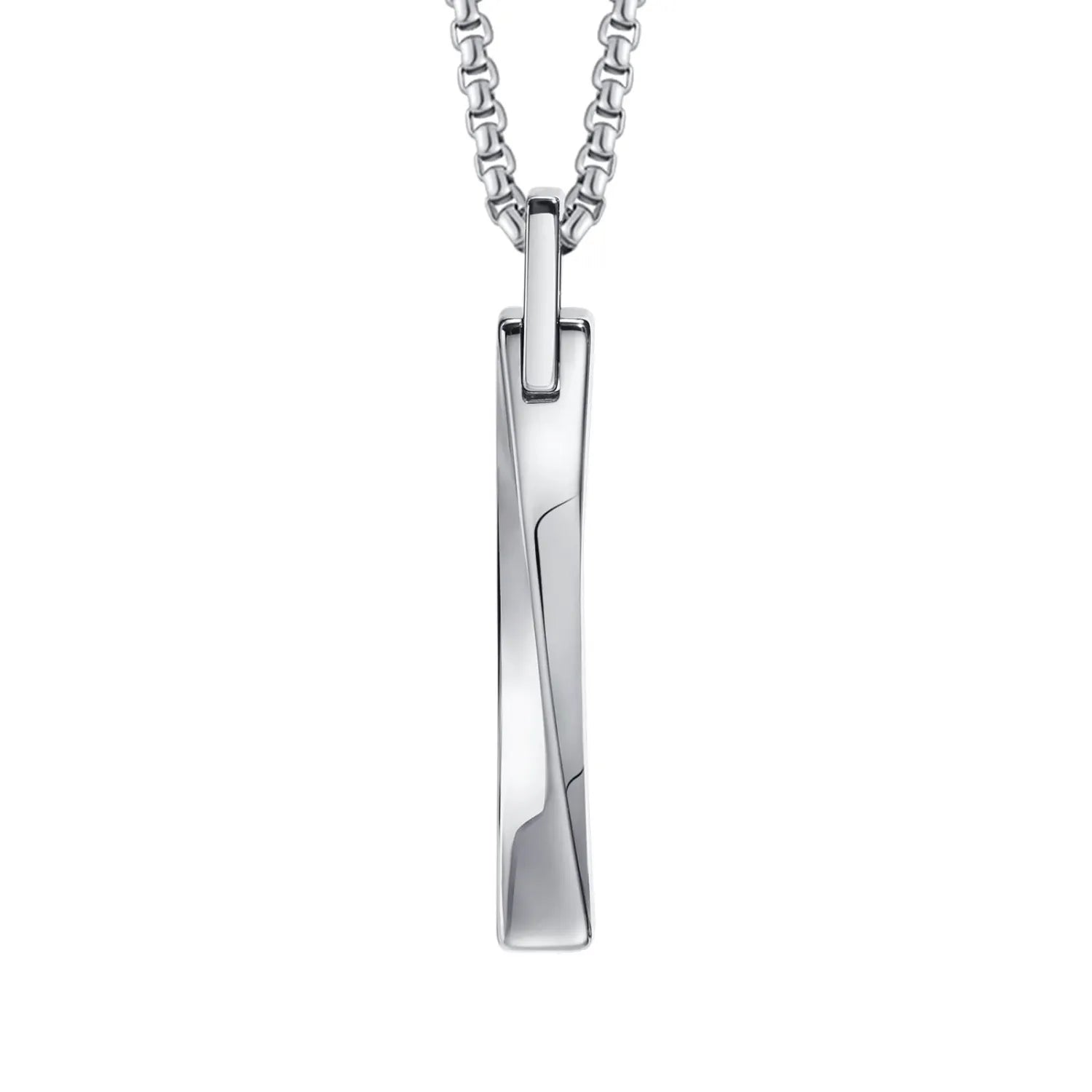 This unique Tungsten carbide pendant with diagonal outer patterning has a polished finish so beautiful that it is almost reflective. Extremley durable long lasting tungsten necklace