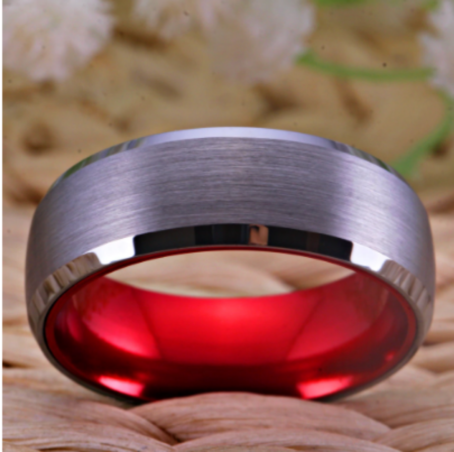 Set in an elegant charcoal hue, this sophisticated black wedding band is the perfect accessory for adding a touch of class to your everyday business attire. This ring is brought to life with a stunning red inner centre that gives it a modern and edgy look. Made from high-quality tungsten this band is also water resistant, scratch proof and possesses anti-corrosive properties.