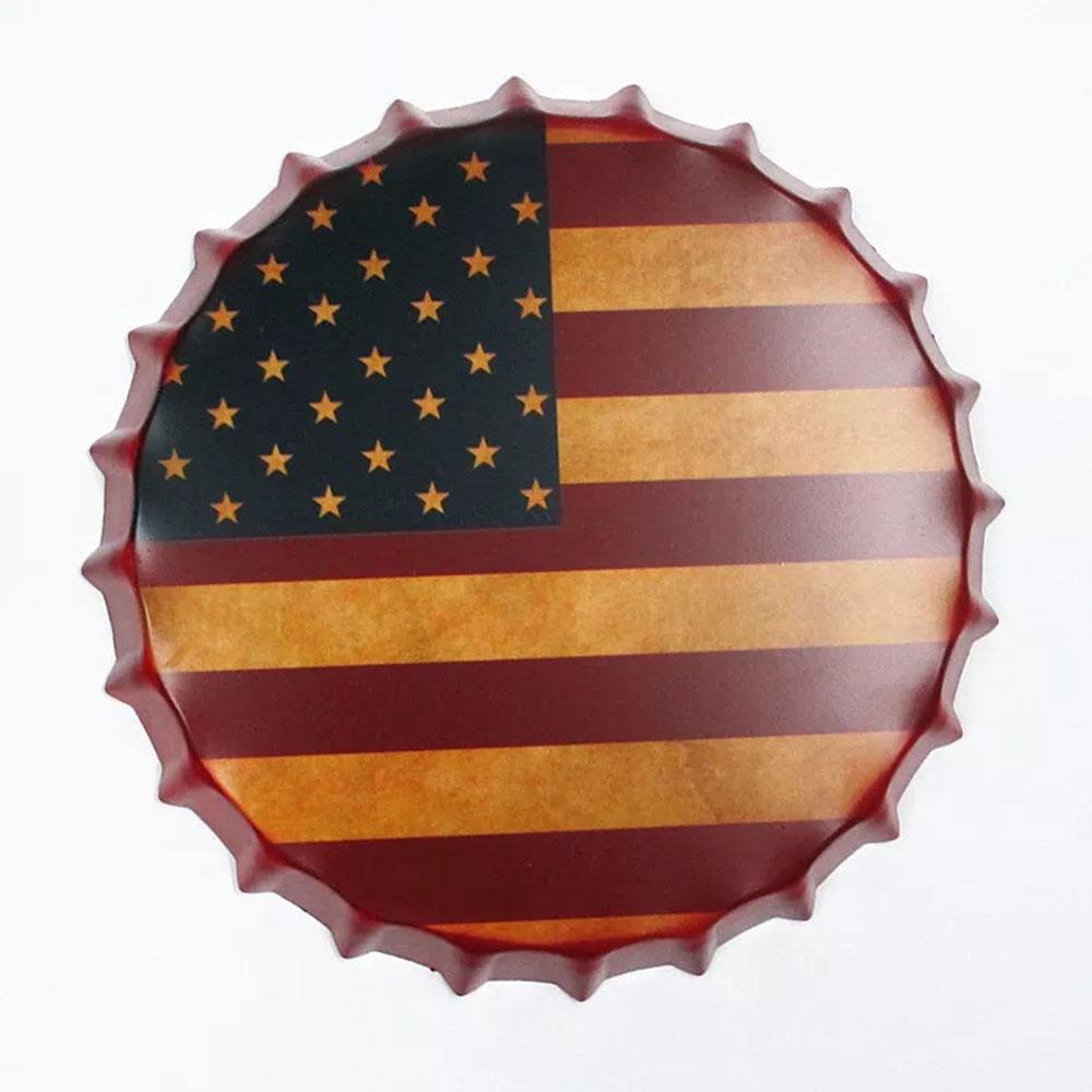 US Flag Print Beer Cap Metal Tin Sign Poster