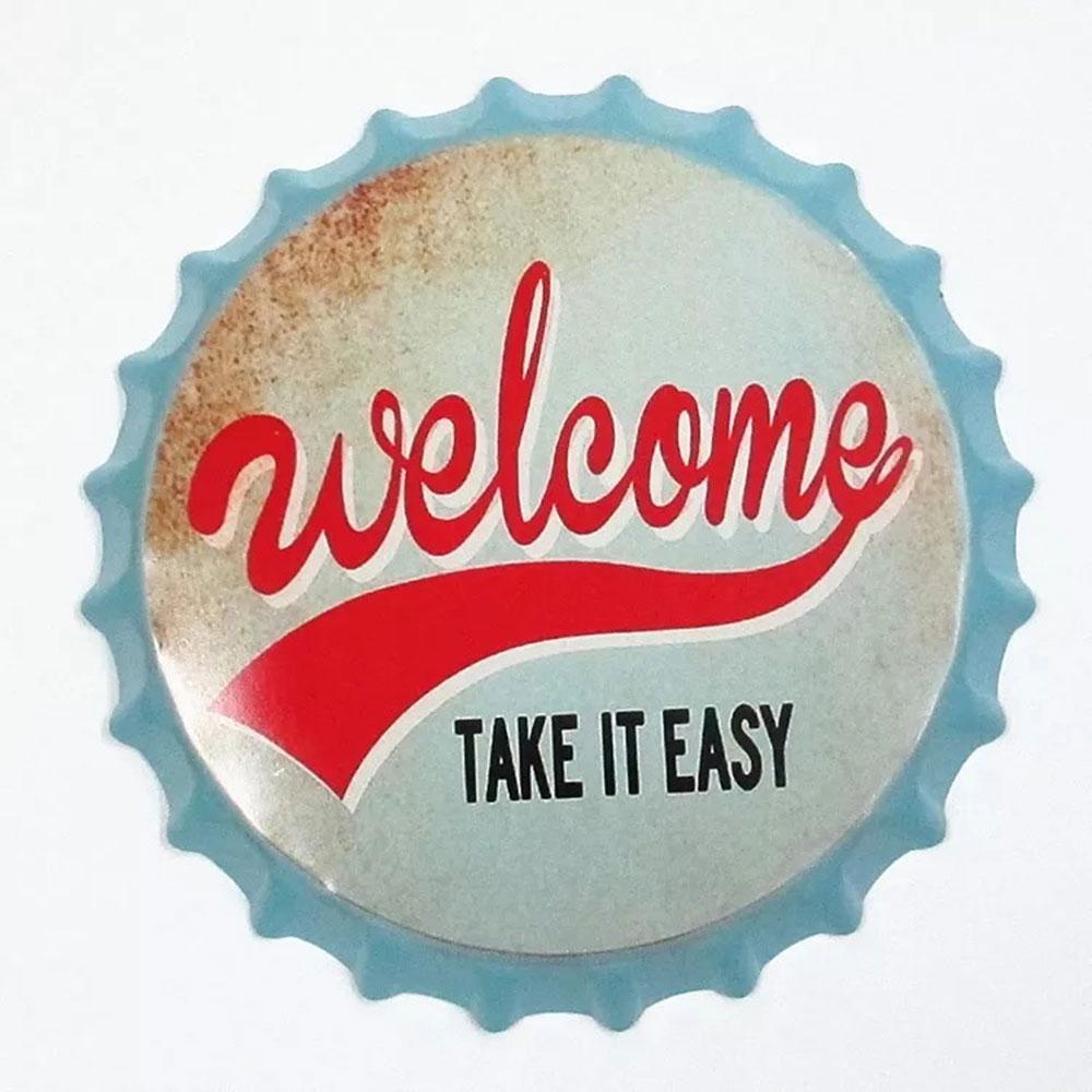 Welcome Take it Easy Beer Cap Metal Tin Sign Poster