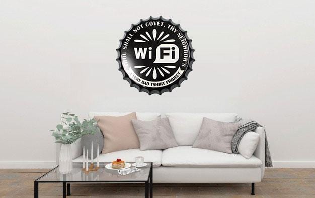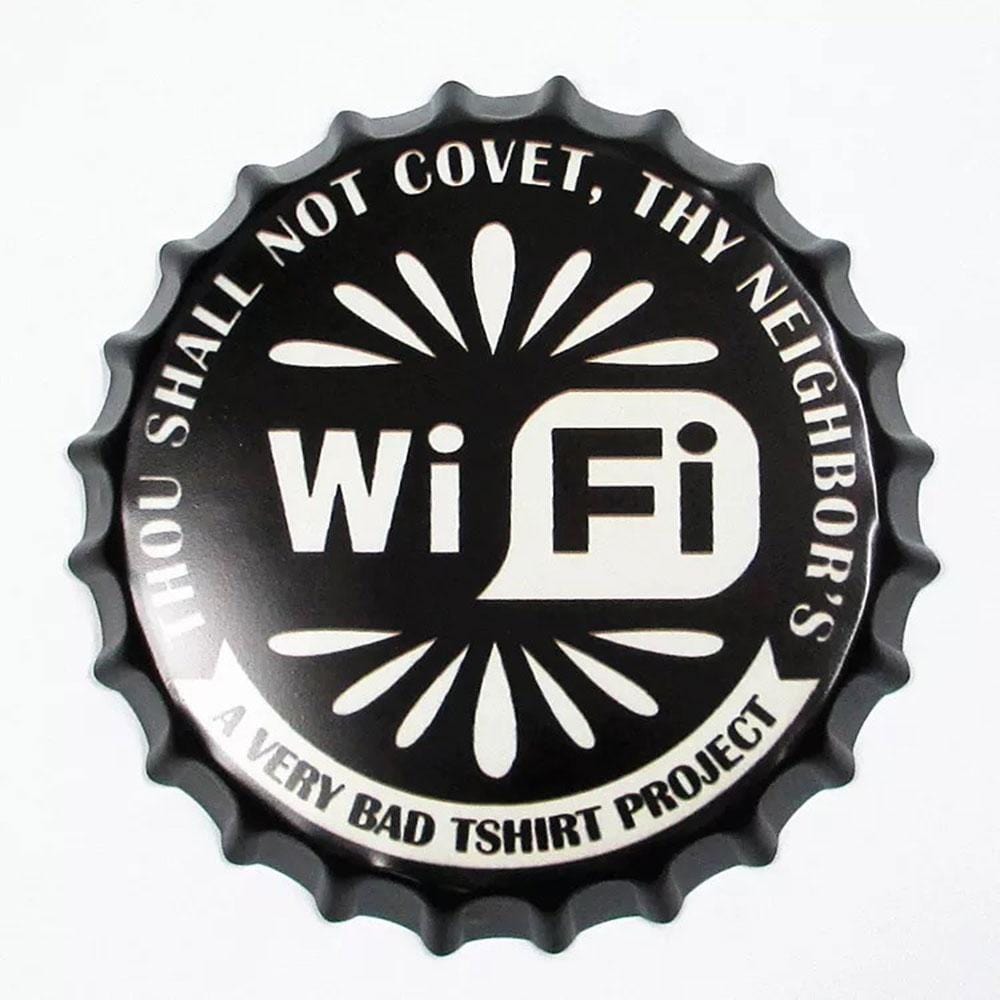 WI-FI Beer Cap Metal Tin Sign Poster will adorn the look and feel of your wall. This versatile and durable tin sign, metal wall poster can be stuck in any corner of your room, office, shop, shed, garage or store and it will look just as great. Imported Iron. Fashion & Retro Quality Tinned Skin. Four pre-drilled holes for hanging or you may use double-sided tape.