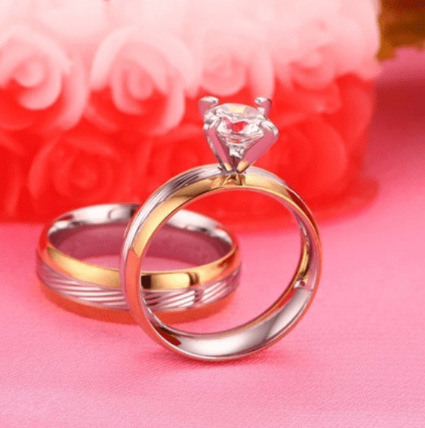Women Gold And Silver Solitaire Wedding Ring