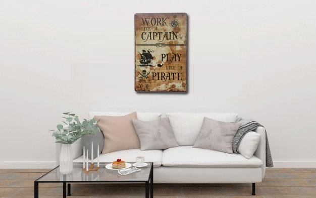 Work like a captain Metal Poster - Wall metal tin poster will adorn the look and feel of your room's wall. The wall poster has dimensions of 20 x 30 cm and can be stuck in any corner of your room and it will look just as great.
