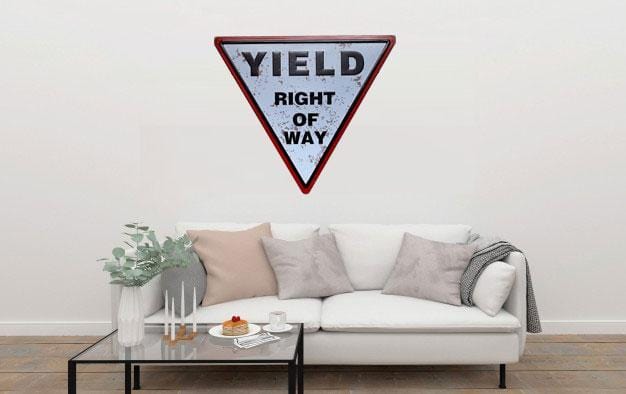 Yield Right Of Way Triangle Metal Tin Sign Poster will adorn the look and feel of your wall. This versatile and durable tin sign, metal wall poster can be stuck in any corner of your room, office, shop, shed, garage or store and it will look just as great. Imported Iron. Fashion & Retro Quality Tinned Skin. Four pre-drilled holes for hanging or you may use double-sided tape.