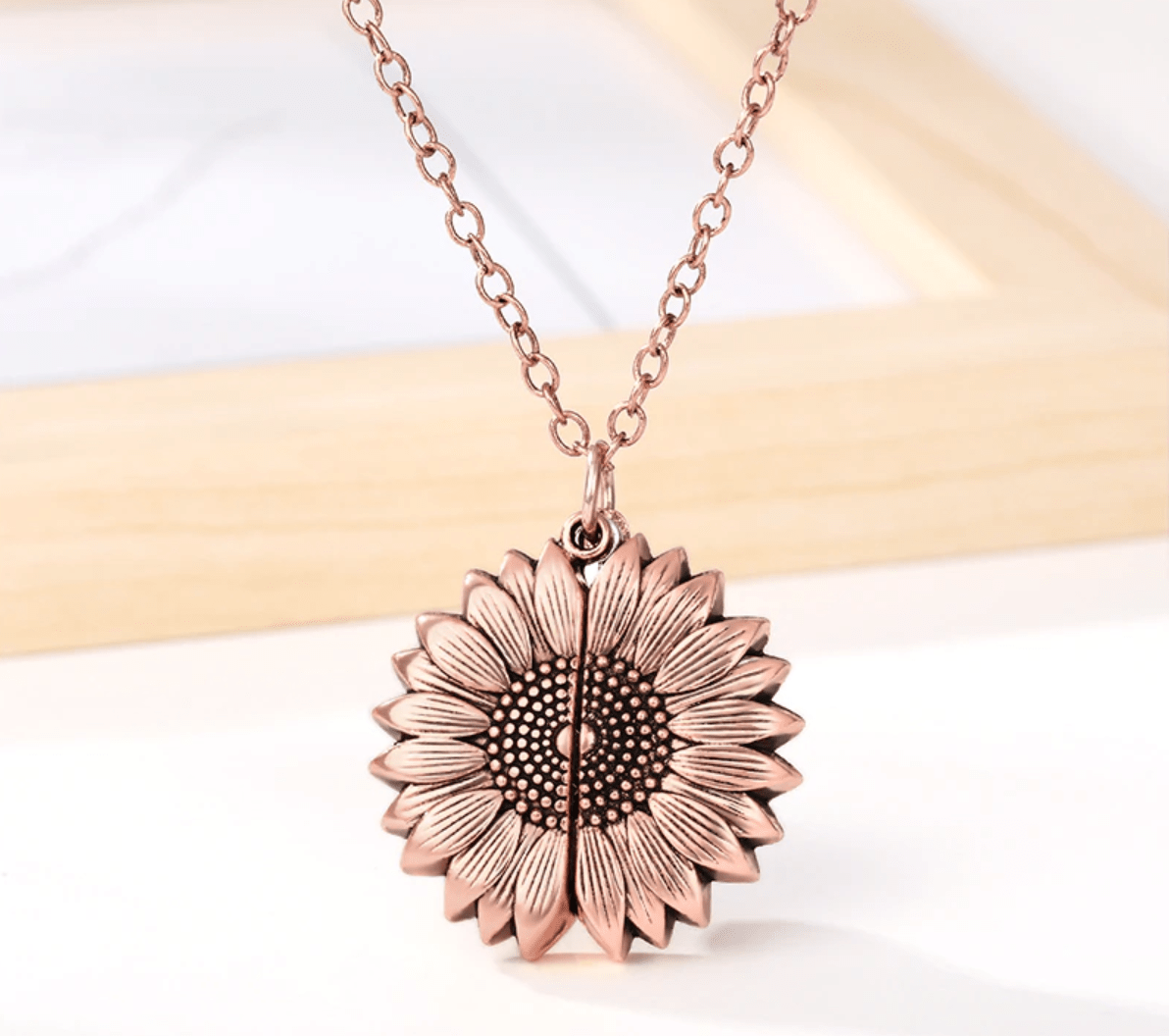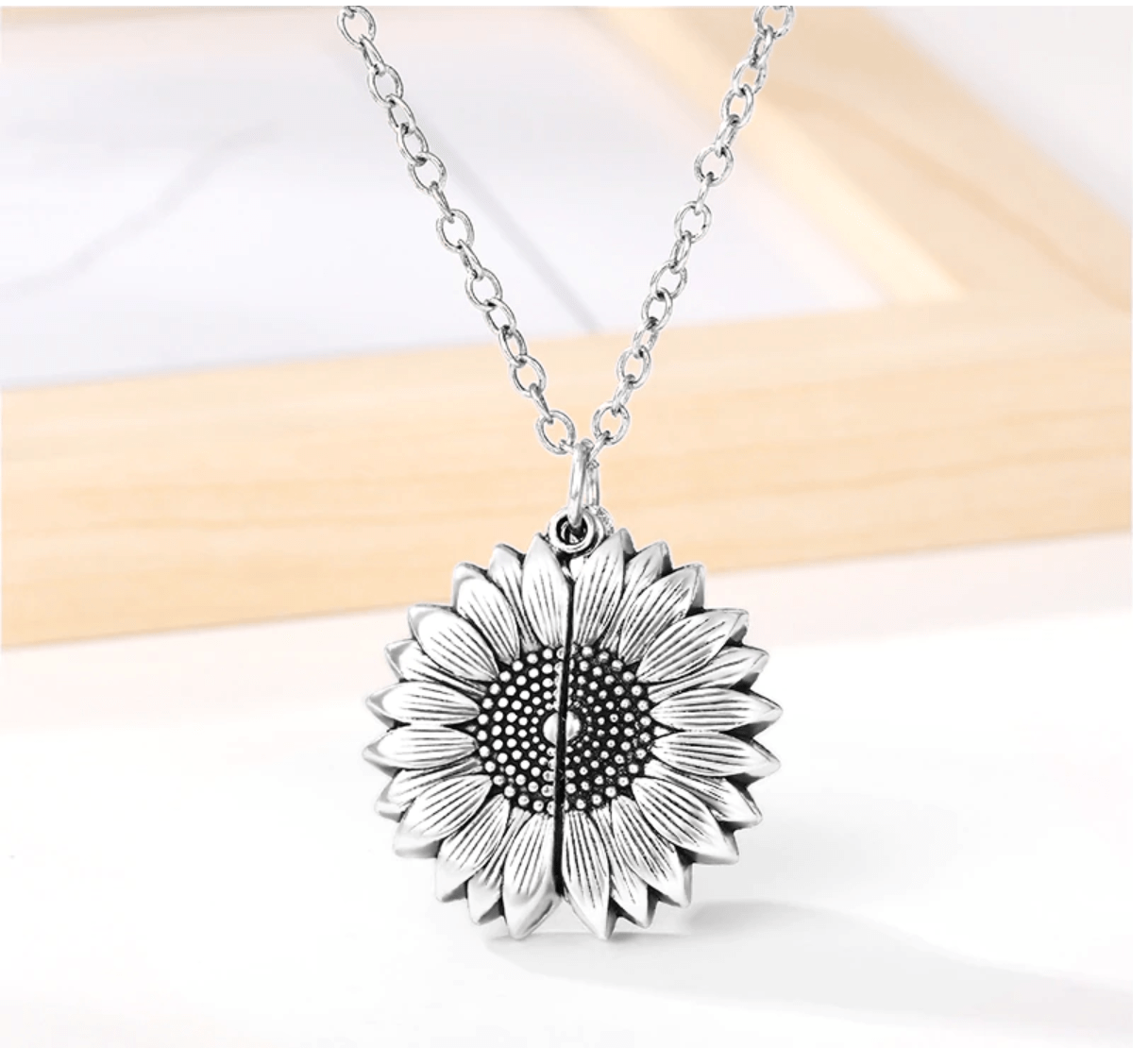 Add a bit of brightness to your outfit with this adorable sunflower necklace. Held together by a gleaming link chain, the charm of this necklace has a cute novelty that is sure to add a touch of sunshine to the wearer's day. What looks like a normal sunflower charm at first has a hidden secret within. By gently parting opposite sides of the sunflower a surprise charm is revealed from inside with the words' You are my sunshine' engraved in a beautiful typeface. This beautiful message is the perfect way to put a smile on a loved one's face, making it the perfect gift for birthday celebrations, special holidays and anniversaries.
