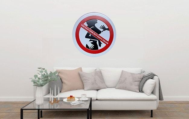 You Can Look but Dont Touch Round Metal Tin Sign Poster will adorn the look and feel of your wall. This versatile and durable tin sign, metal wall poster can be stuck in any corner of your room, office, shop, shed, garage or store and it will look just as great. Imported Iron. Fashion & Retro Quality Tinned Skin. Four pre-drilled holes for hanging or you may use double-sided tape.