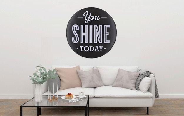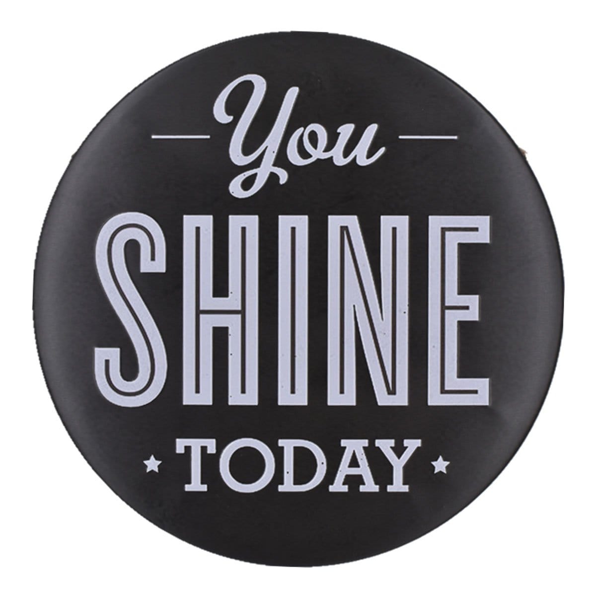 You Shine Today Round Metal Tin Sign Poster will adorn the look and feel of your wall. This versatile and durable tin sign, metal wall poster can be stuck in any corner of your room, office, shop, shed, garage or store and it will look just as great. Imported Iron. Fashion & Retro Quality Tinned Skin. Four pre-drilled holes for hanging or you may use double-sided tape.