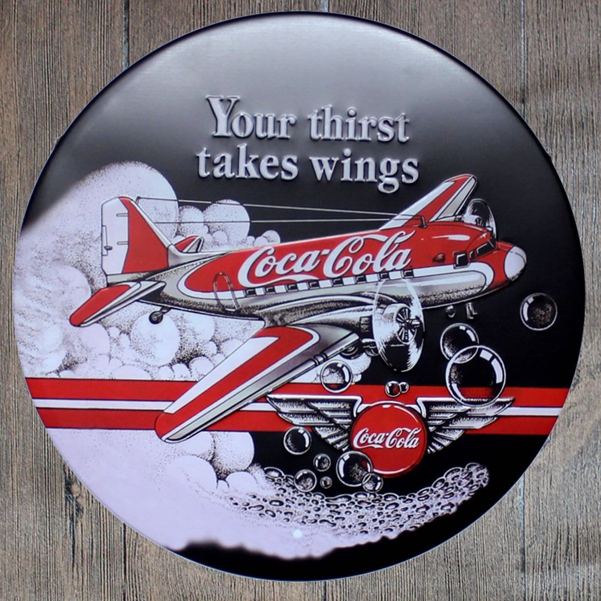 Your Thirst Takes Wings Round Metal Tin Sign Poster will adorn the look and feel of your wall. This versatile and durable tin sign, metal wall poster can be stuck in any corner of your room, office, shop, shed, garage or store and it will look just as great. Imported Iron. Fashion & Retro Quality Tinned Skin. Four pre-drilled holes for hanging or you may use double-sided tape.