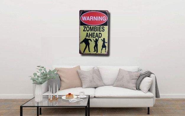 Zombies Ahead Metal Tin Poster - Wall metal tin poster will adorn the look and feel of your room's wall. The wall poster has dimensions of 20 x 30 cm and can be stuck in any corner of your room and it will look just as great.