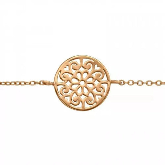Rose Silver Gold Antique Bracelet Metal : Sterling Silver Measurement : Size : 13 mm x 13 mm Finishing : Rose Gold Plated Chain : Total Length :18 cm, Includes Extension :2 cm, Thickness : 1.2 mm Features : Rose Silver Gold Antique Bracelet comes with an elegantly...- $32.90