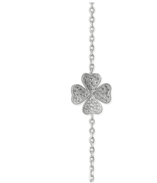 Four Leaf Cubic Zirconia Adjustable bracelet Metal : Sterling Silver Finish : High polish, rhodium plated Length : 6.7 inches + 1.6 inch extension (170+40 cm) Charm Height : 12.4mm (0.5 inches) Charm Width : 12.3mm (0.5 inches) Features : Pavé Four Leaf Clover CZ Adjustable bracelet comes with...- $39.90